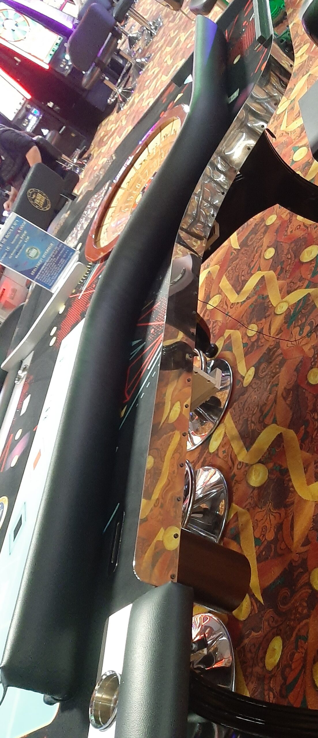 Les boudins, parties rembourrées qui entourent la table de jeux et servent à reposer les bras ou à éviter que les jetons tombent, étaient abîmés. Le simili cuir a été remplacé pour laisser peau neuve au nouveau revêtement.